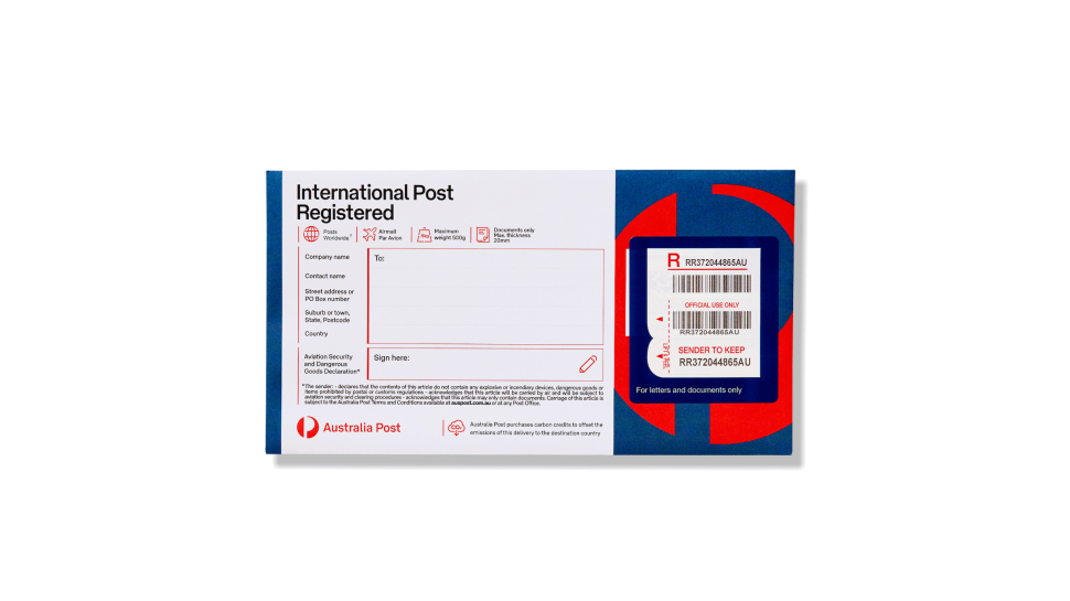 International Post Registered prepaid envelopes are suitable for sending items up to $100 in value.2